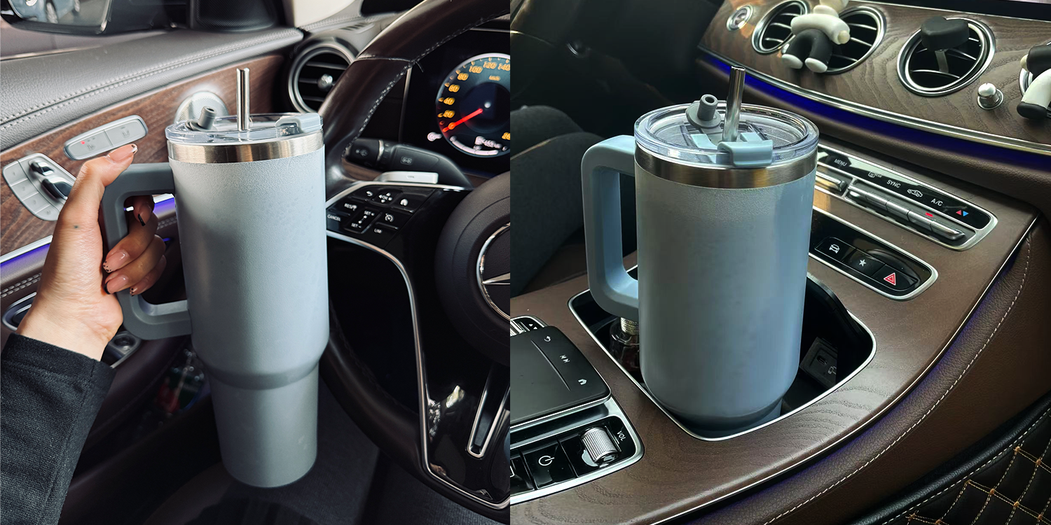 40oz Coffee Mug to Go Thermal Mug Double-Walled Stainless Steel with Handle and Straw Thermal Tumbler-Hblue